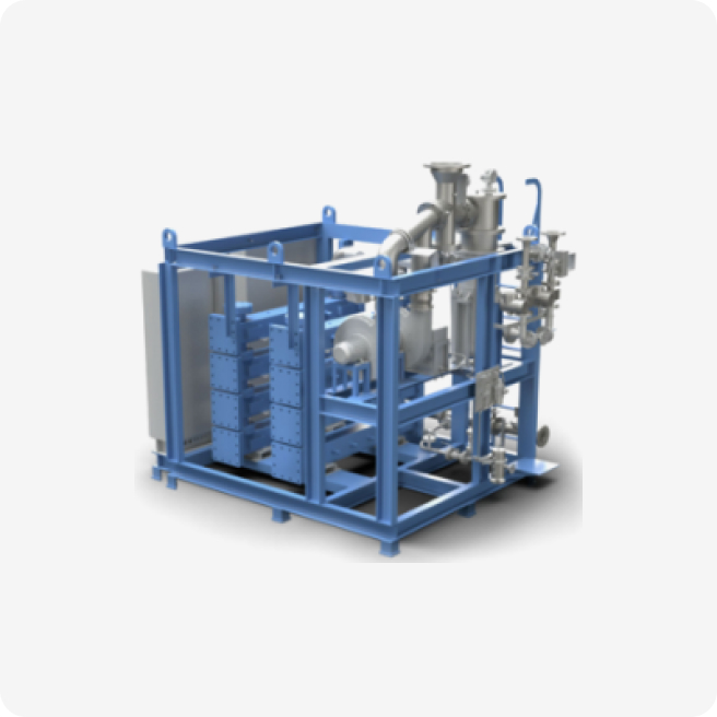 Compact size through the indirect electrolysis method, applicable to all vessels.