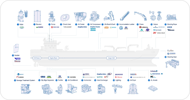 Brochure PDF DownloadHD Hyundai Marine Solution delivers a comprehensive one-stop solution for all marine equipment required for vessels. Through close partnerships with a wide network of suppliers, we ensure optimal quality and efficiency, providing fast and accurate delivery tailored to customer requirements.