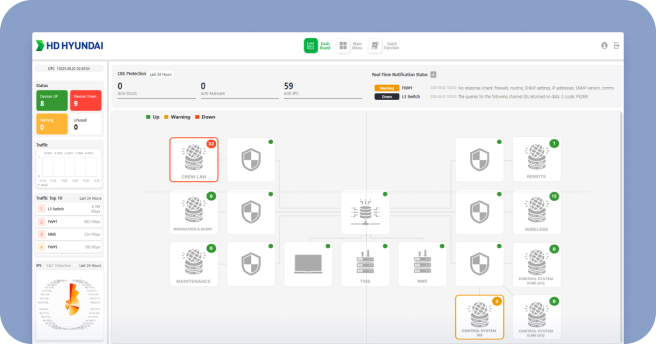 Provide precise and comprehensive monitoring functions for complex onboard network environments through support for various industry-standard protocols (Modbus, SNMP, Syslog, etc.) spanning IT and OT equipment.