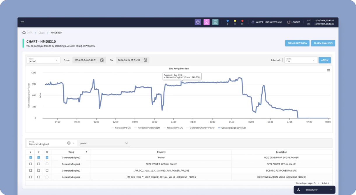 HiEMS monitors engine operating status and alarms in real time to immediately identify anomalies. This enables early diagnosis and response to problems that may occur during vessel operation.