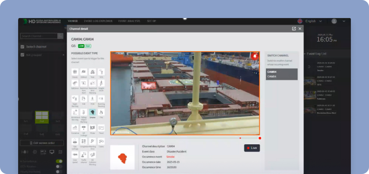 An intelligent safety management solution that combines AI and CCTV to detect and monitor safety-related events onboard vessels in real time.