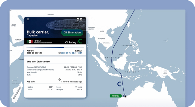 Support enhanced fuel efficiency and effective environmental regulation response through optimal route calculation and CII rating analysis functions.